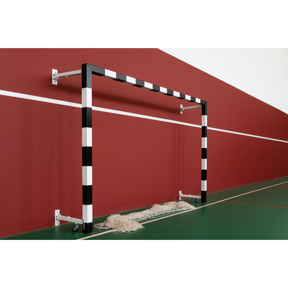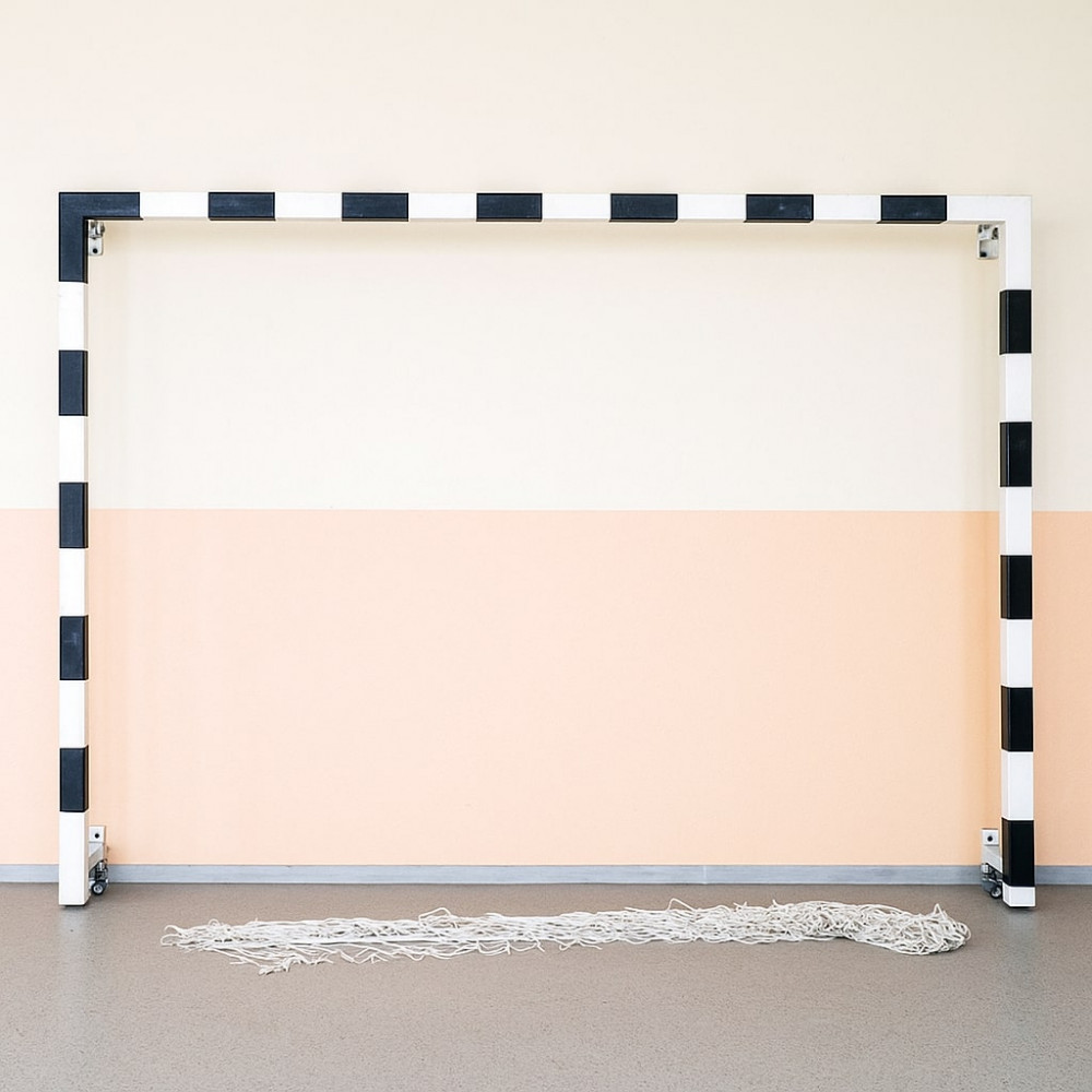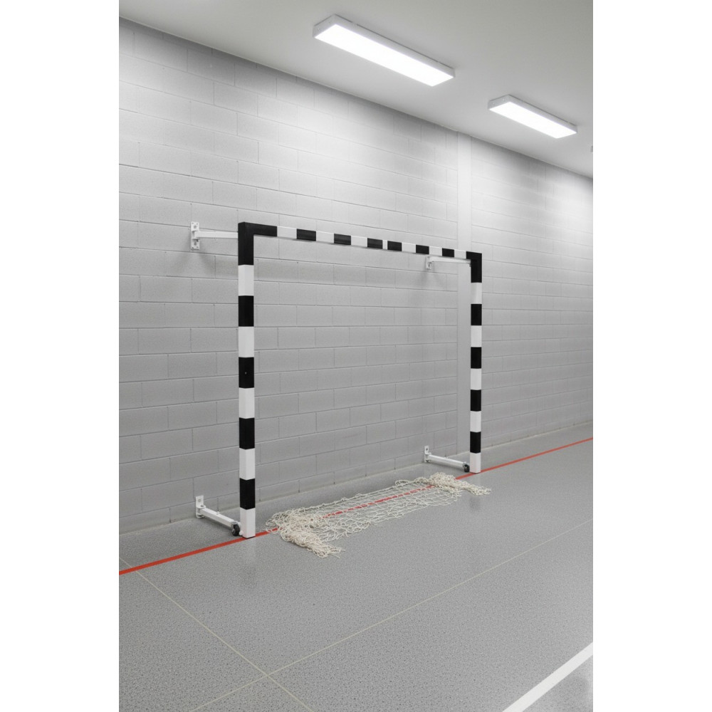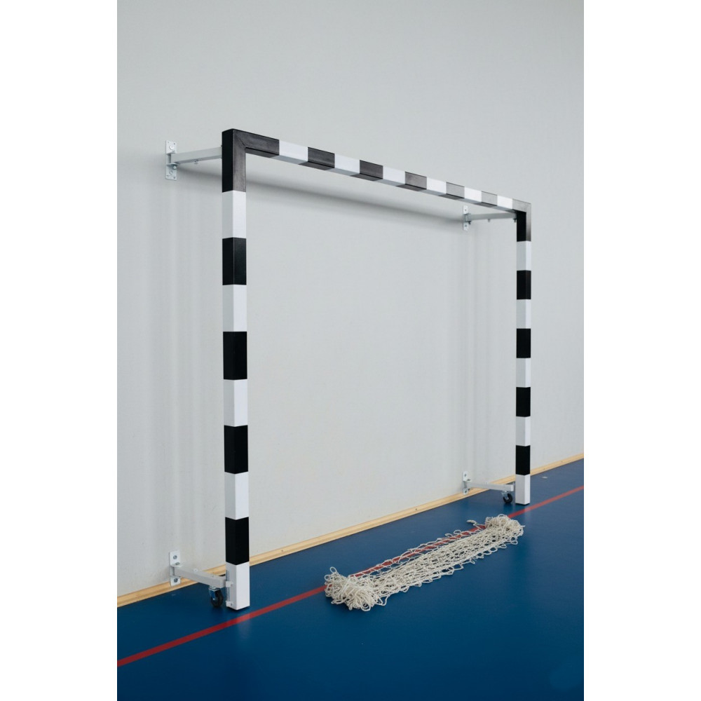 Ворота для мини-футбола и гандбола 2х3 м – складная пристеночная модель, выполненная из стального квадратного профиля 80х80 мм с порошковым покрытием, идеально подходит для использования в спортивных залах.